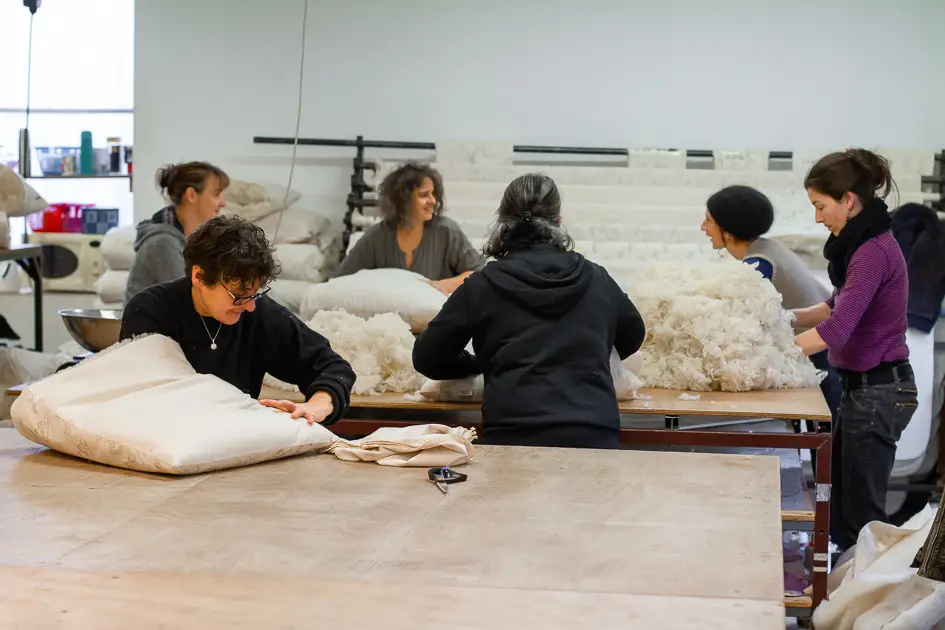 Elle fabrique des matelas, des couettes, des oreillers garnis de laine, et depuis 1986 une gamme de vêtements dans un atelier de Valence. Dans l’esprit des « circuits courts » elle fait le choix de la vente directe aux particuliers : vente sur place, sur les foires et salons bio et par correspondance. En 2021, près de 60 personnes travaillent sur le site, qui est devenu une véritable ruche d’activités diversifiées autour de la valorisation des ressources locales. C’est dans cet esprit qu’Ardelaine s’affirme aujourd’hui comme une « coopérative de territoire ». Aujourd’hui elle est heureuse de constater que son action, avec celle des collectivités publiques et d’autres entrepreneurs crée une vraie dynamique locale qui offre aux habitants des emplois, des services et une qualité de vie bien appréciable. Le Nouveau catalogue est disponible au magasin L'Aile du Papillon au Crès. Matelas, Couettes, vêtements en pure laine. Si un article vous intéresse, contactez Ardelaine au 04 75 66 63 08 info@ardelaine.fr pour le réserver. Il vous sera livré au magasin sans frais de port le 19/10/2024 (dans la limite des stocks disponibles) www.ardelaine.fr